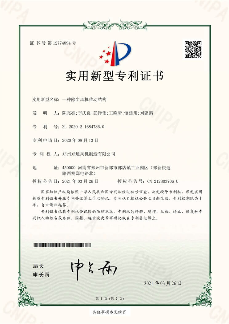 鄭通風(fēng)機(jī)主要產(chǎn)品包括:高壓風(fēng)機(jī)、不銹鋼風(fēng)機(jī)、消防排煙風(fēng)機(jī)、防腐防爆風(fēng)機(jī)、廚房排油煙風(fēng)機(jī)、玻璃鋼風(fēng)機(jī)、鍋爐引風(fēng)機(jī)、軸流風(fēng)機(jī)、柜式離心風(fēng)機(jī)、鍋爐引風(fēng)機(jī),產(chǎn)品通過ISO9001、ISO14001、ISO45001國際標(biāo)準(zhǔn)化組織制定的質(zhì)量管理體系認(rèn)證,部分產(chǎn)品通過了3C認(rèn)證和國家防爆電器產(chǎn)品質(zhì)量監(jiān)督檢驗(yàn)中心認(rèn)證。